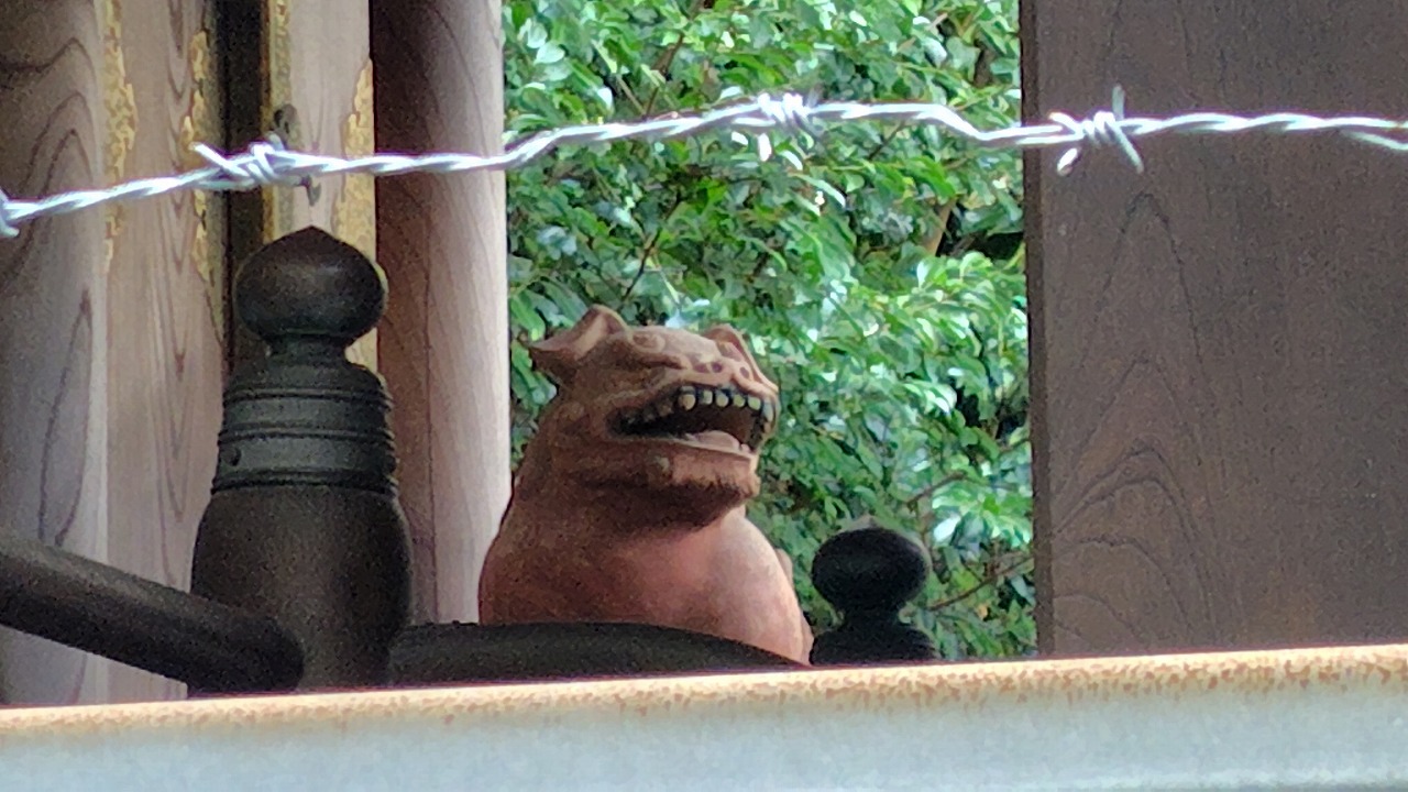 よく見ると、漆器の狛犬様がおられます。歯がリアル…。