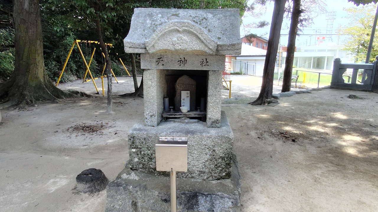 天神社。石造の祠で、側面には「安政4年(1857年)12月…」と刻まれています。