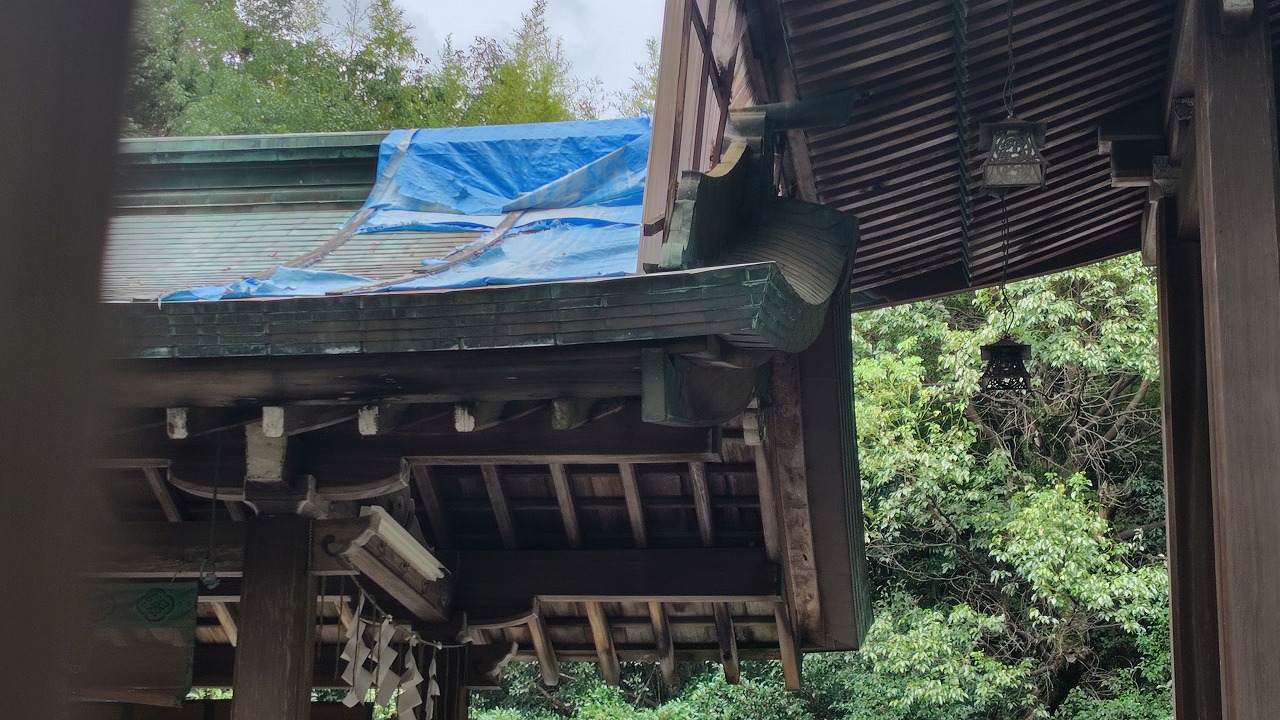 幣殿の一部が損傷しています。
