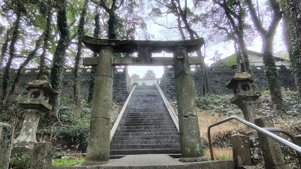 三の鳥居の先に石段が続いています。拝殿まだかなぁ。。