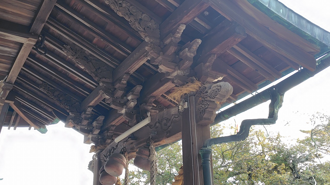 拝殿の屋根を裏から見たところ。精巧な造りなんですね。宮大工ってすごい。