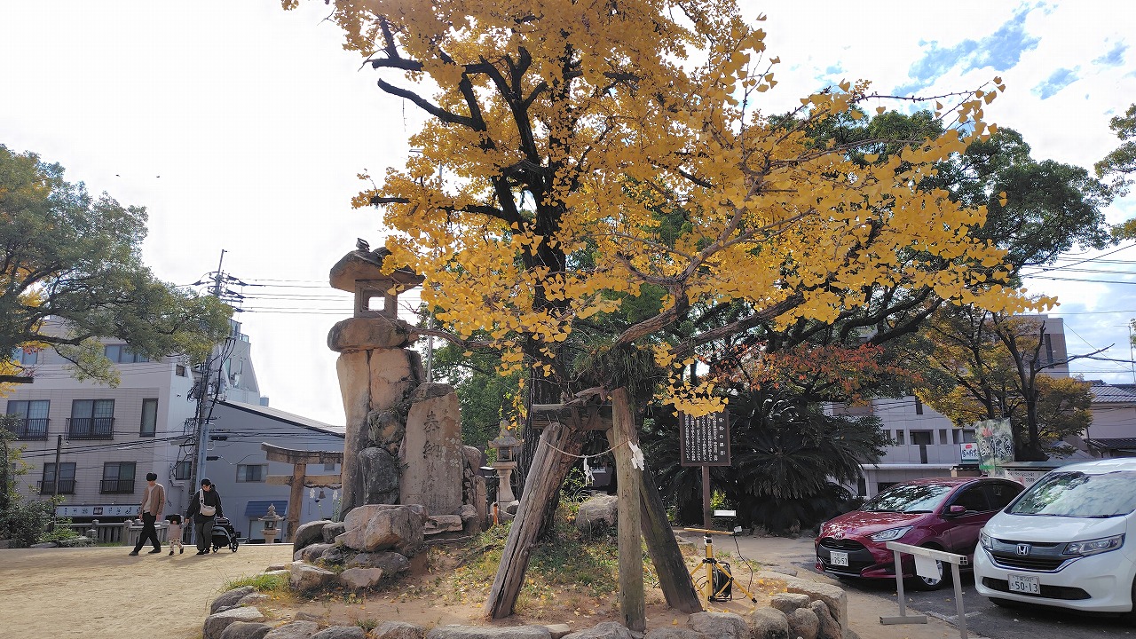 宿禰(すくね)の銀杏。御祭神の仲哀天皇・神功皇后・応神天皇にお仕えした大臣武内宿禰手植えの銀杏と伝えられる古木です。