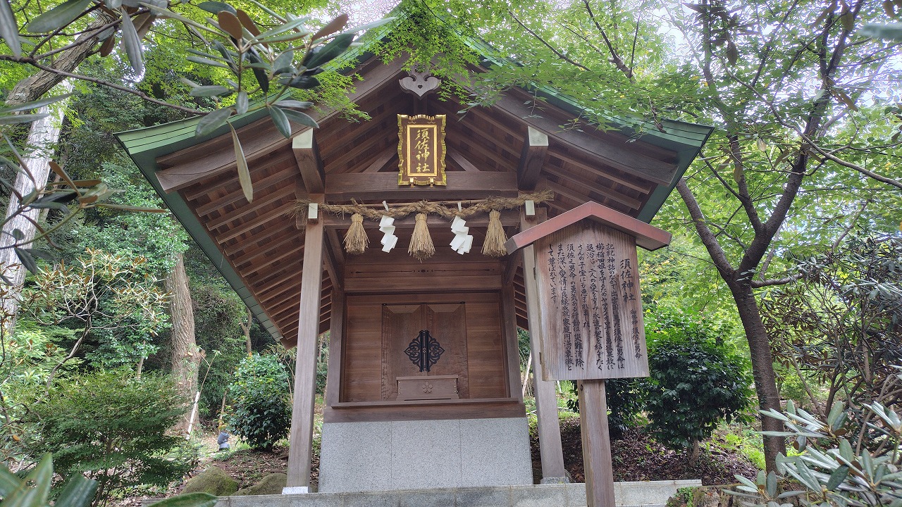 末社・須佐社。御祭神の須佐之男命の勇気ある行動と深い愛情は、良縁成就、家庭円満の象徴として尊ばれています。