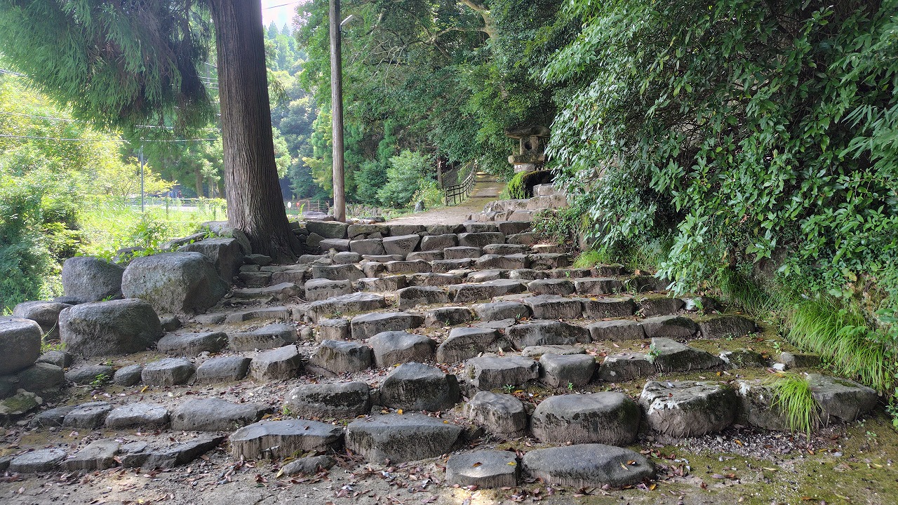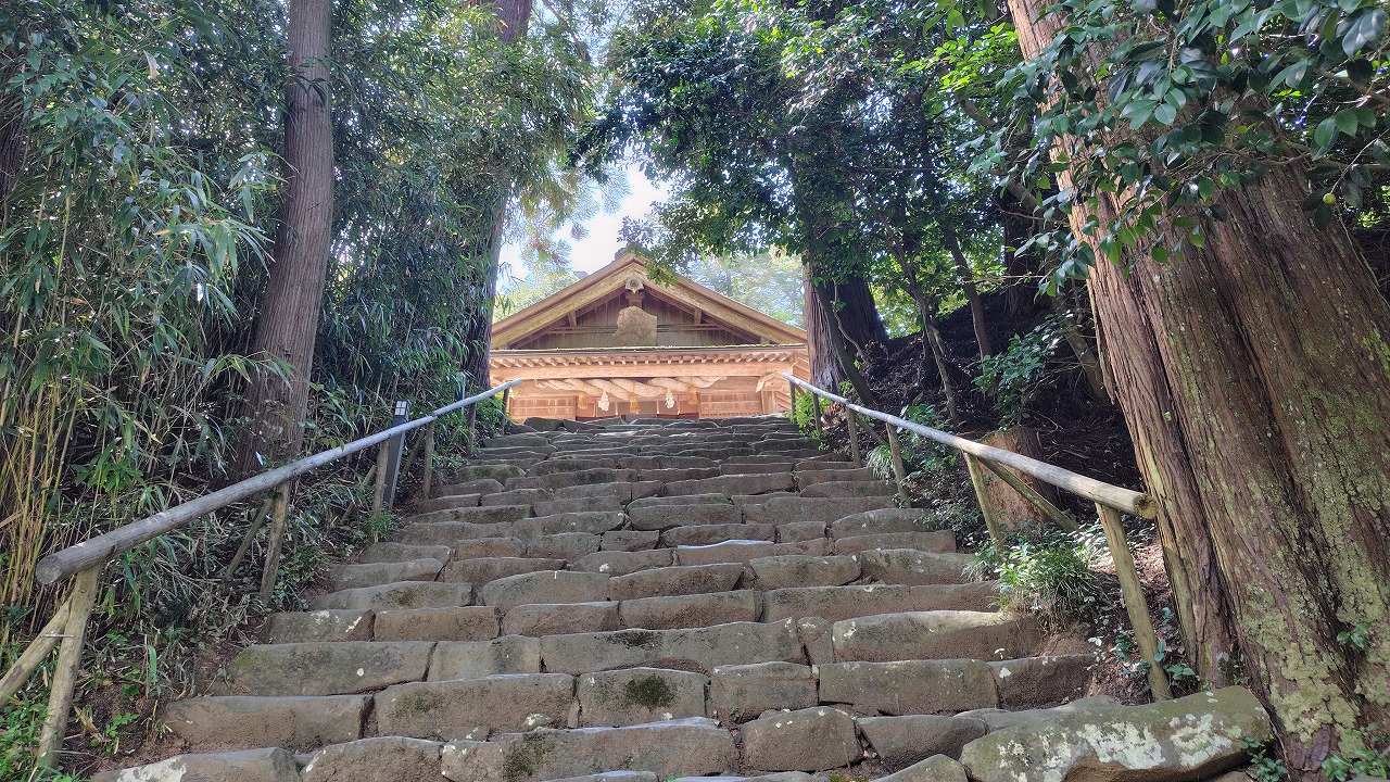 石段を見上げると拝殿が見えました。すぐそこだけど太ももが痛い^^;