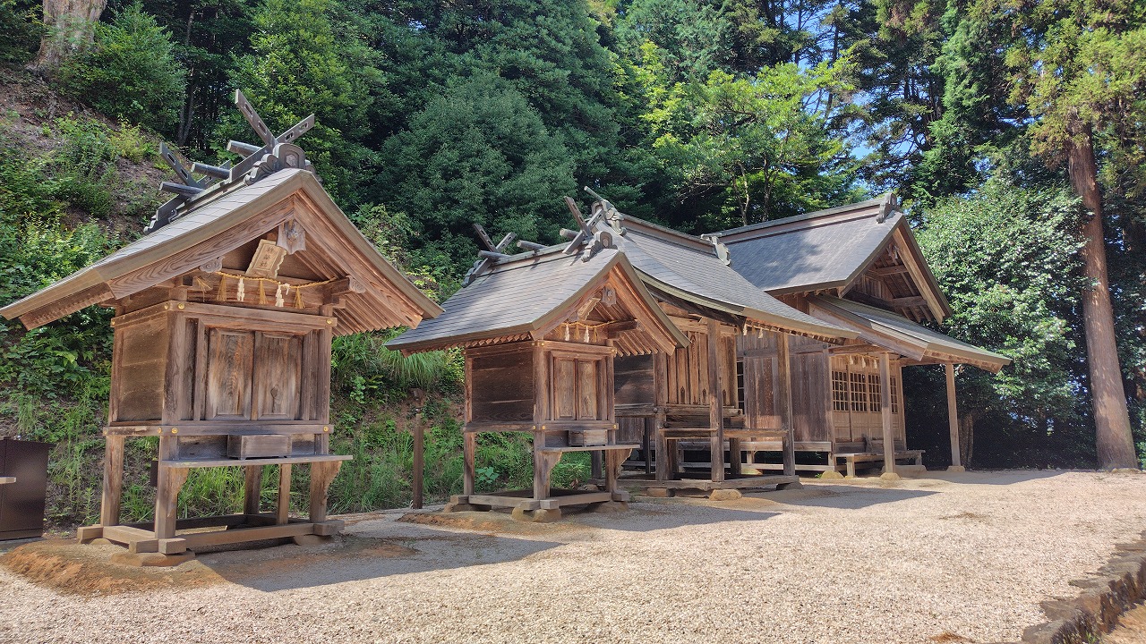 境内に鎮座する左から、杵築社、伊勢社、熊野社