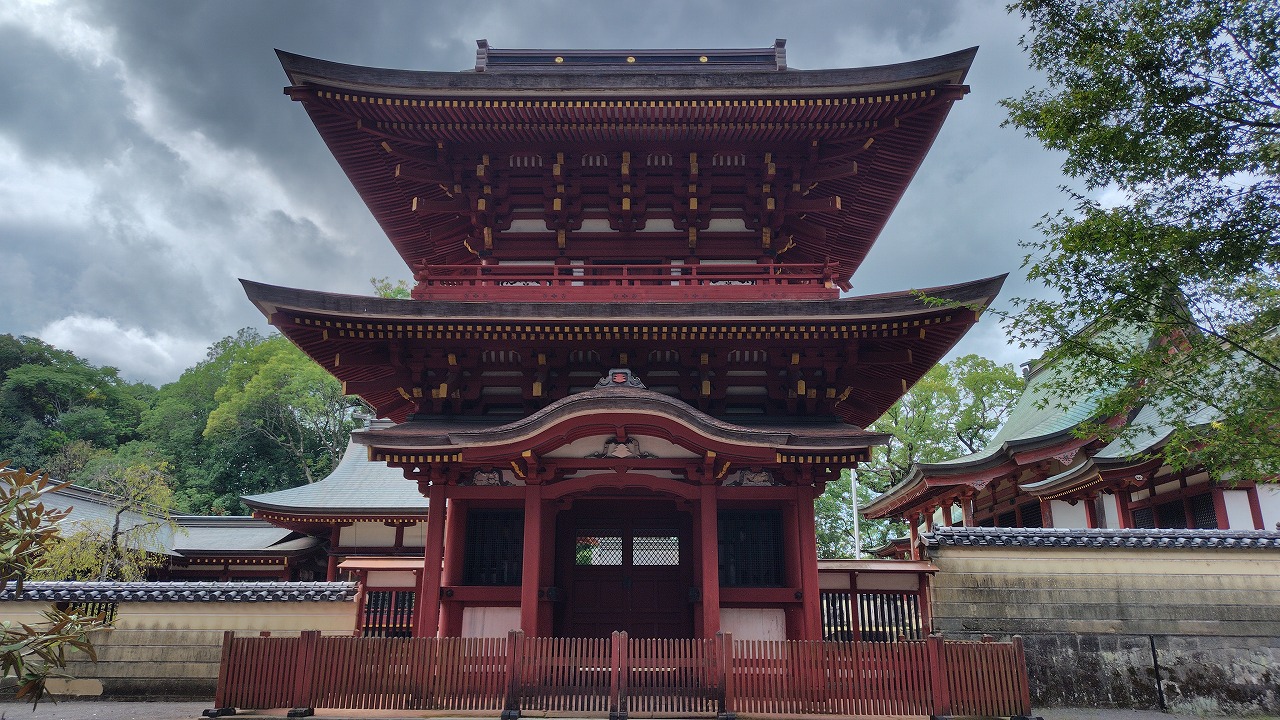 おーすごい。江戸時代初期の大変珍しい形式の裳階付き三間一戸二重門。学術的にも重要な建築物として、昭和63年(1988年)、国指定重要文化財になっています。