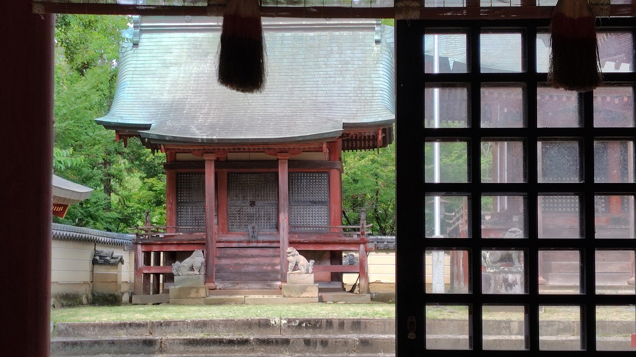 横から見た八坂社。よく見ないと、普通に本殿に見えてしまいます。