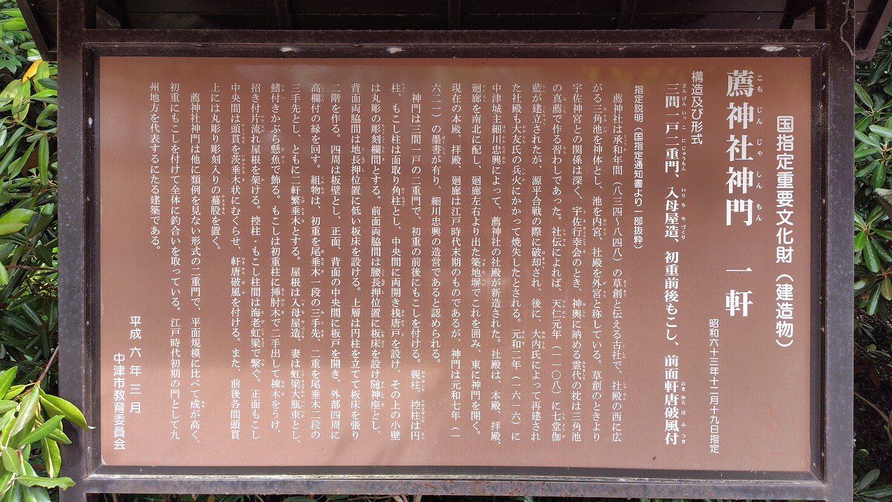神門の説明書き。江戸時代初期の門として九州を代表する建築物だそうです。