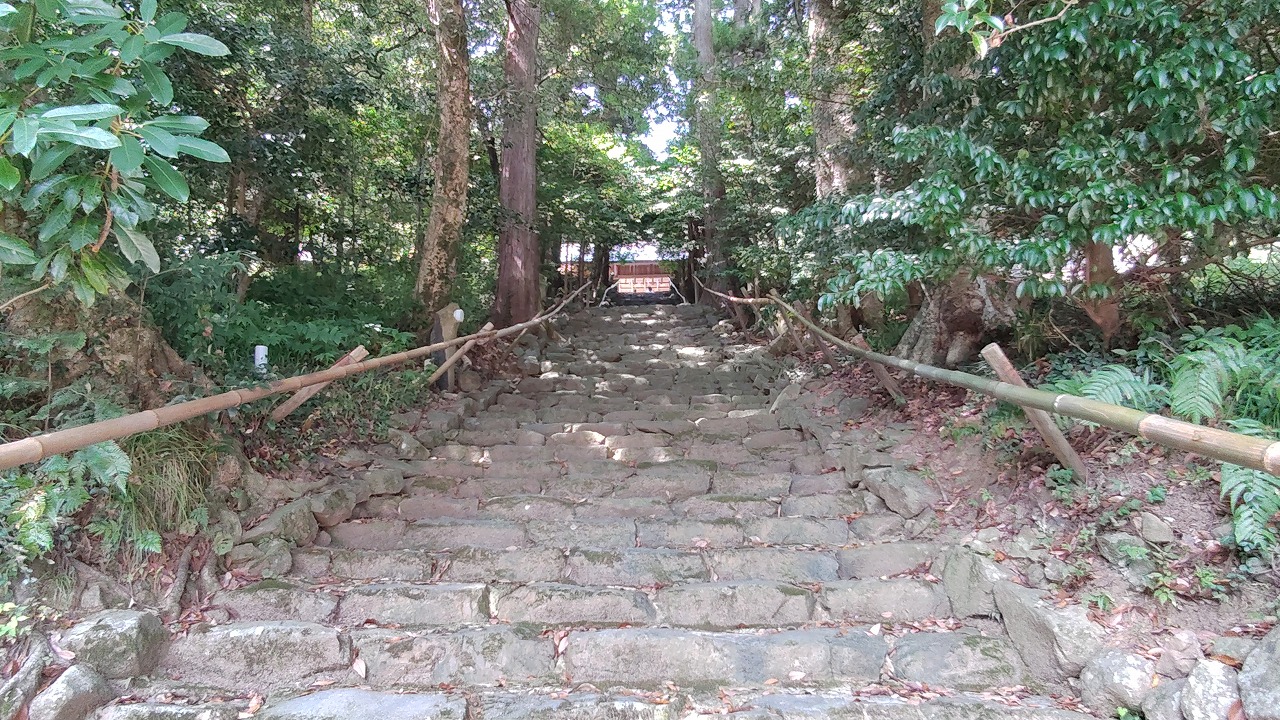 不揃いの石段の先に拝殿が見えています。頑張りましょう。