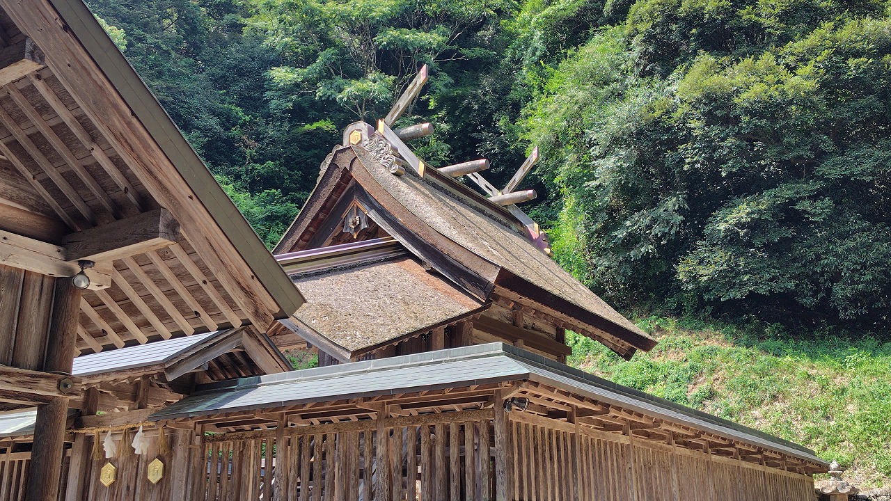 現在の本殿は寛文2年(1662年)の再建で県の指定文化財です。千木が折れていますが、修復に2600万円かかると宮司さんがおっしゃっていました。