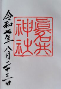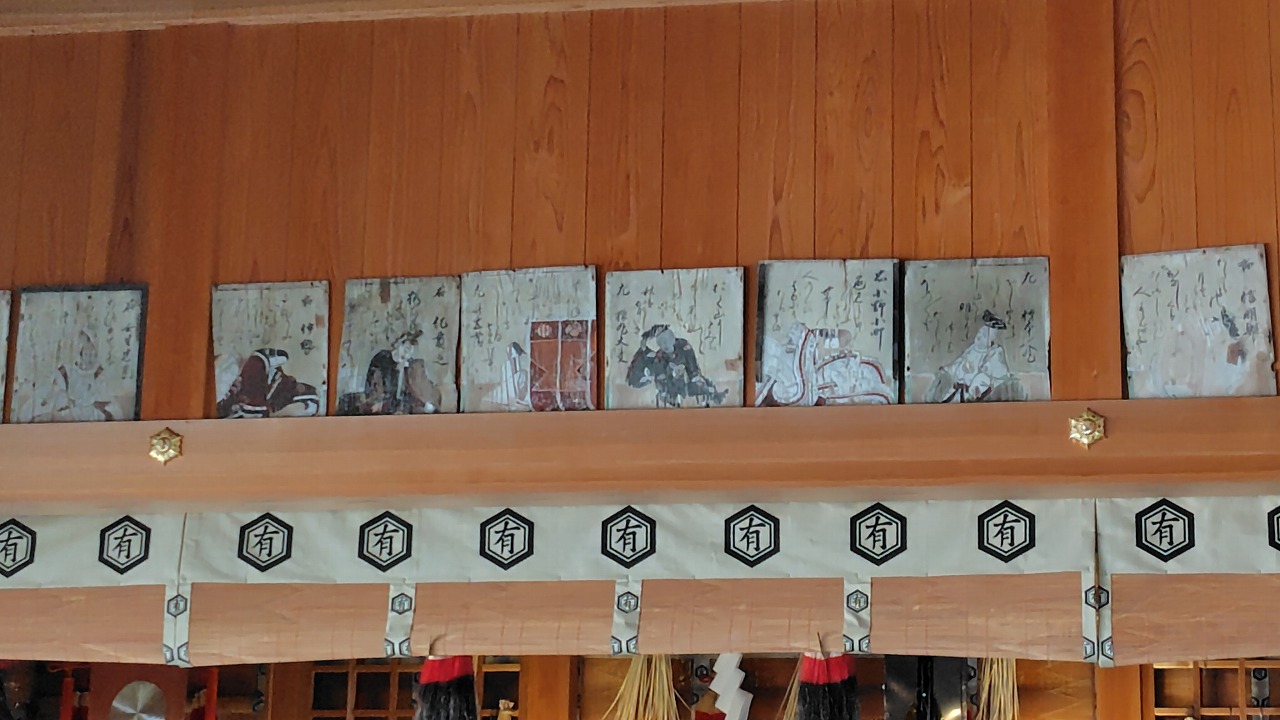 中門にある神紋は二重の亀甲に「有」の字。宮司さん曰く、「有」は2つの文字を表しているそうです。何だと思いますか?答えは「十」と「月」です^^