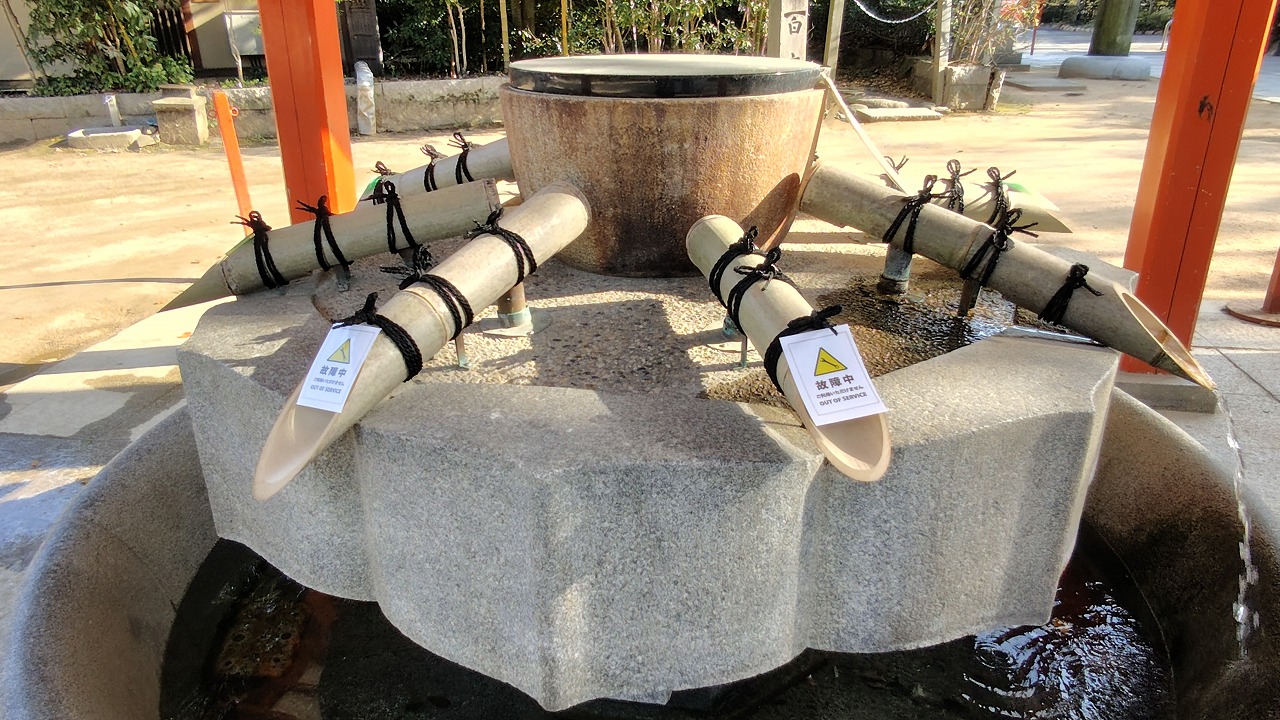 手水舎。いくつも「故障中」で水が出ませんでした。残念(-_-;)