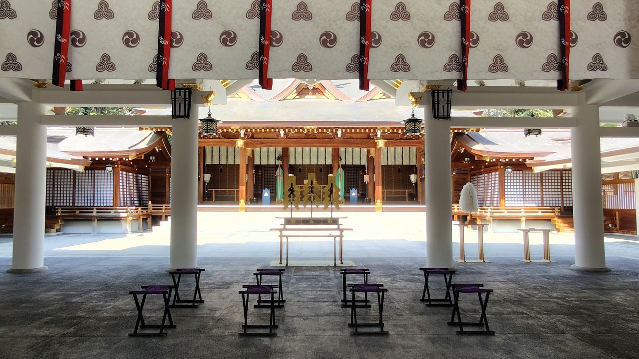 本殿は昭和20年(1945年)の空襲により焼失しましたが、全国の崇敬者からの寄付により、昭和36年(1961年)に「三連春日造」で再建されました。