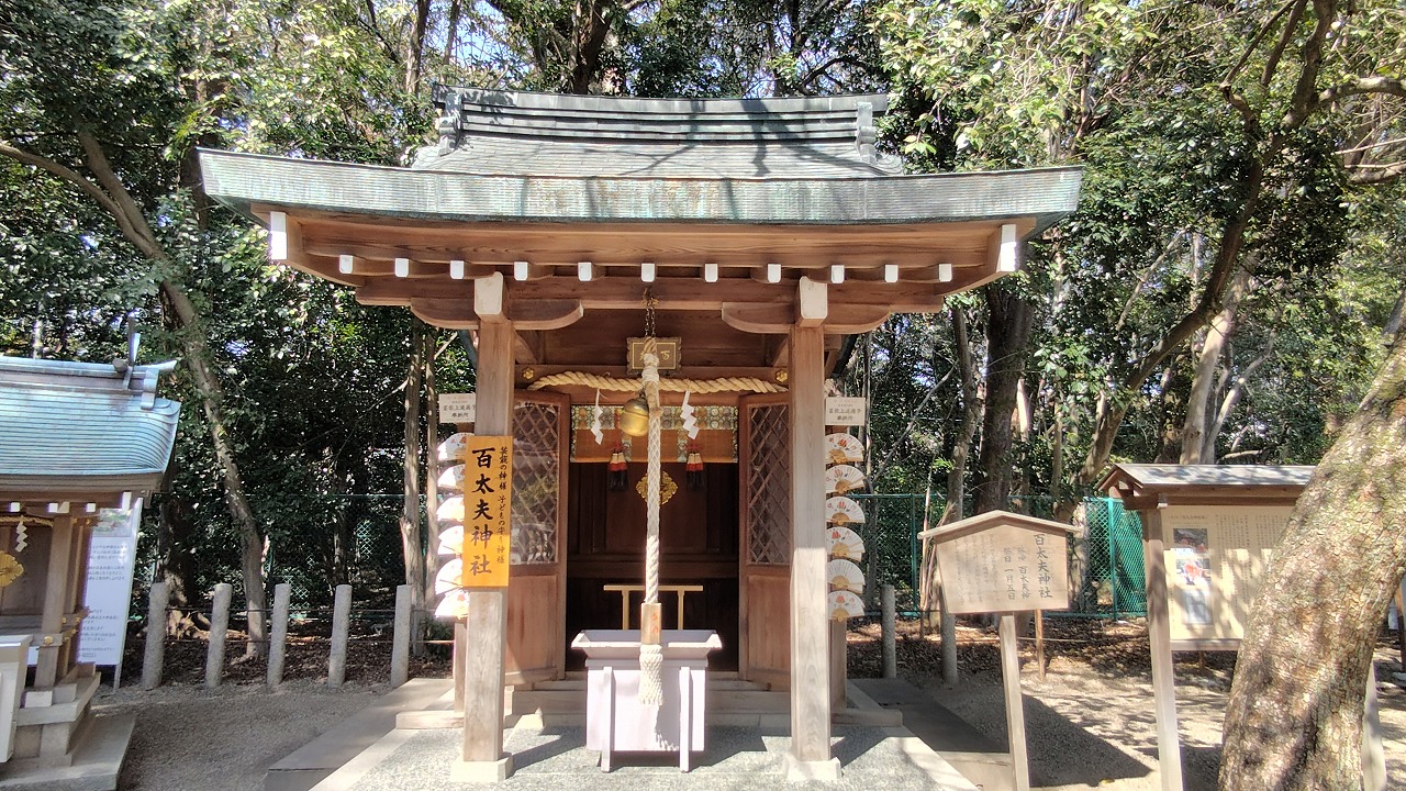 散在する境内社の一つ。百太夫神社。芸能の神様、子どもの守り神様です。