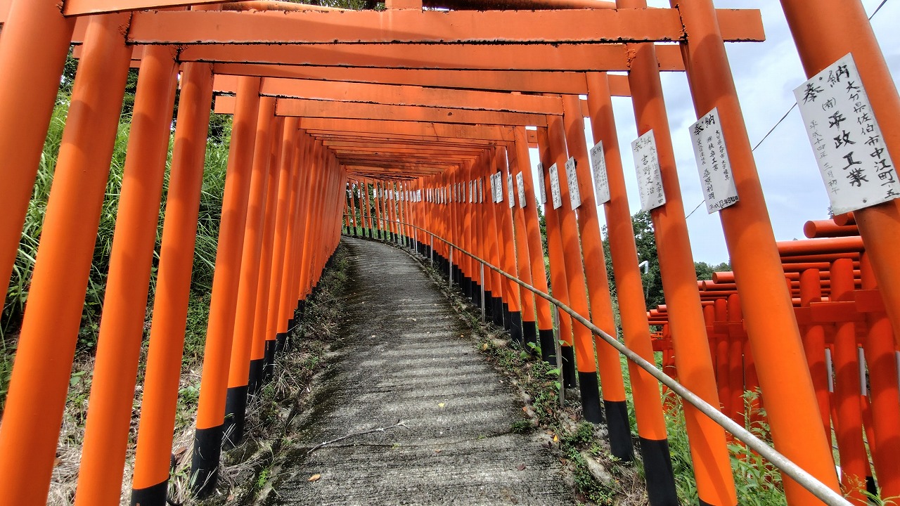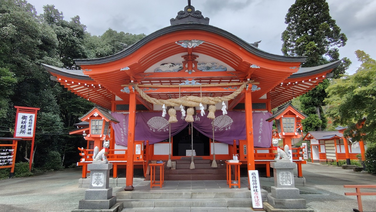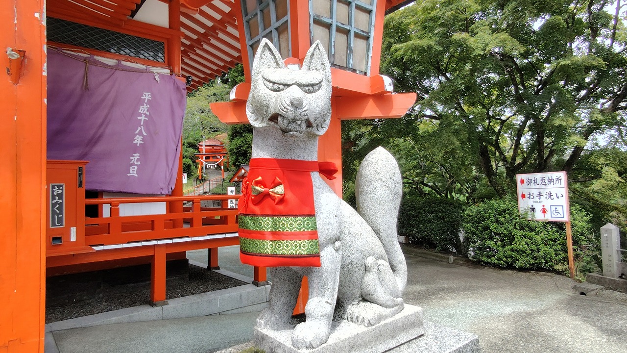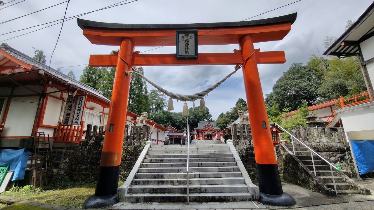 大分県竹田市に鎮座する九州三大稲荷の一つ。初詣には数万人の参拝者が訪れ、商売繁盛、家内安全、交通安全、学業成就に御利益があるとされています。
