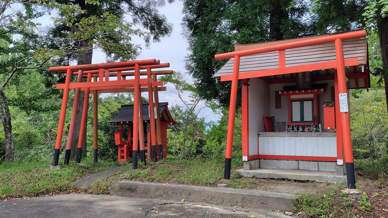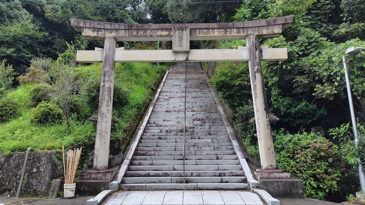 境内横まで車で登ることができますが、途中、鳥居と石段がありました。ここ行ったら辛そうなので、車で進みます^^;