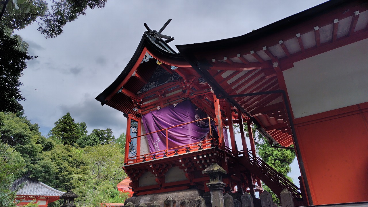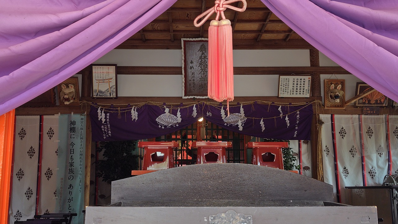 拝殿の横を通って本殿へ。高い位置に設けられています。