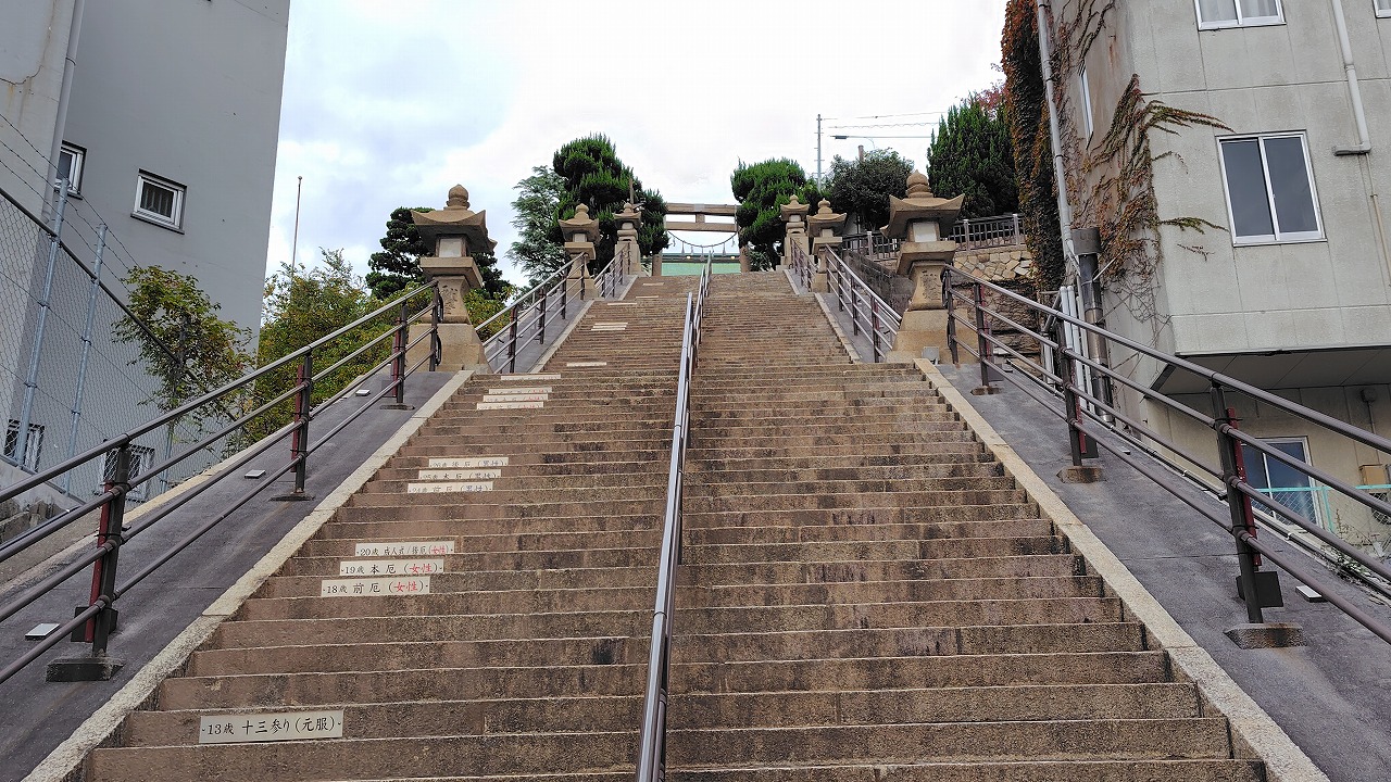 さっそく石段を登っていきます。頑張ろう!