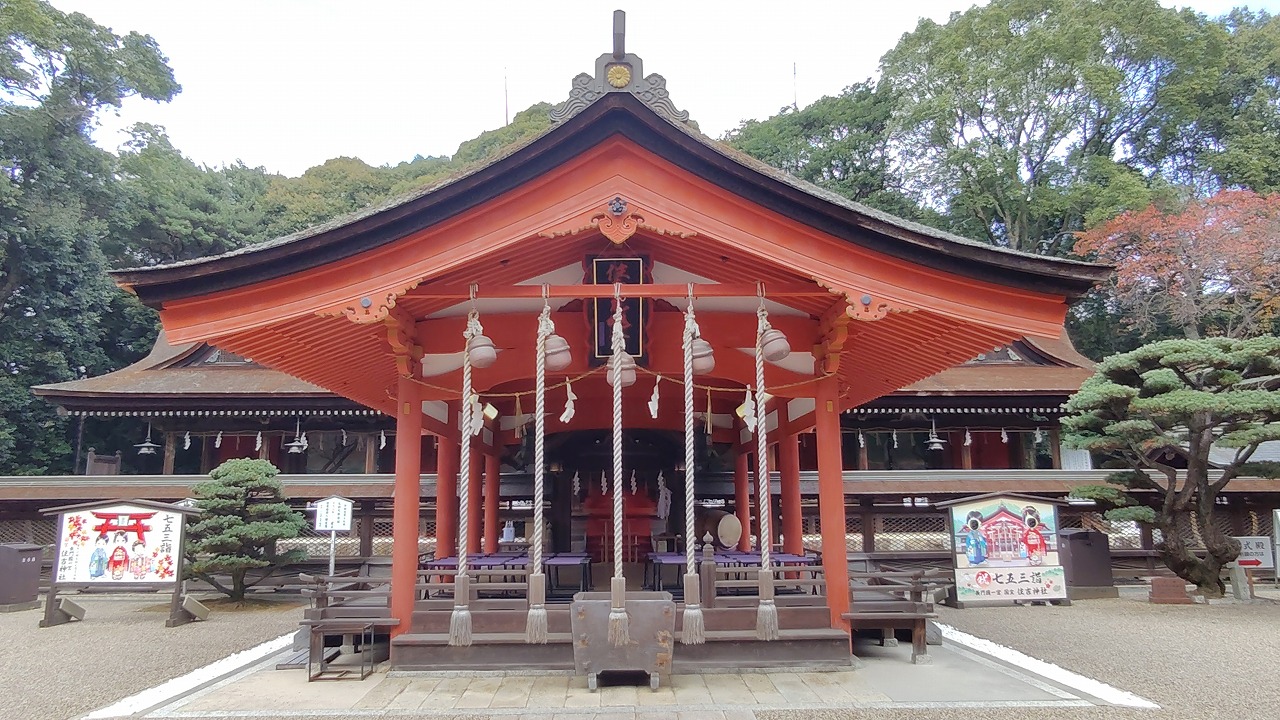 本殿は、応安3年(1370)に大内弘世によって再建された室町初期の代表的な九間社流造で昭和28年(1953年)に国宝に指定されています。