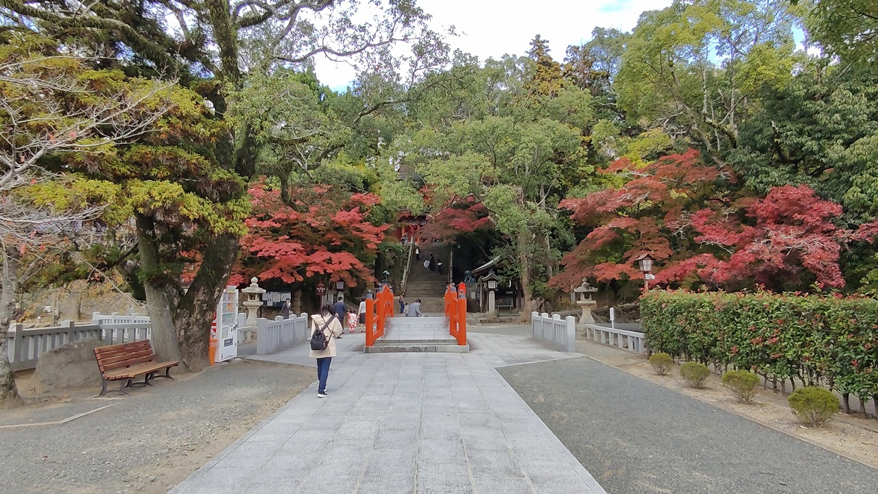 鳥居から伸びる参道を直進します。紅葉がキレイでした(^_-)-☆