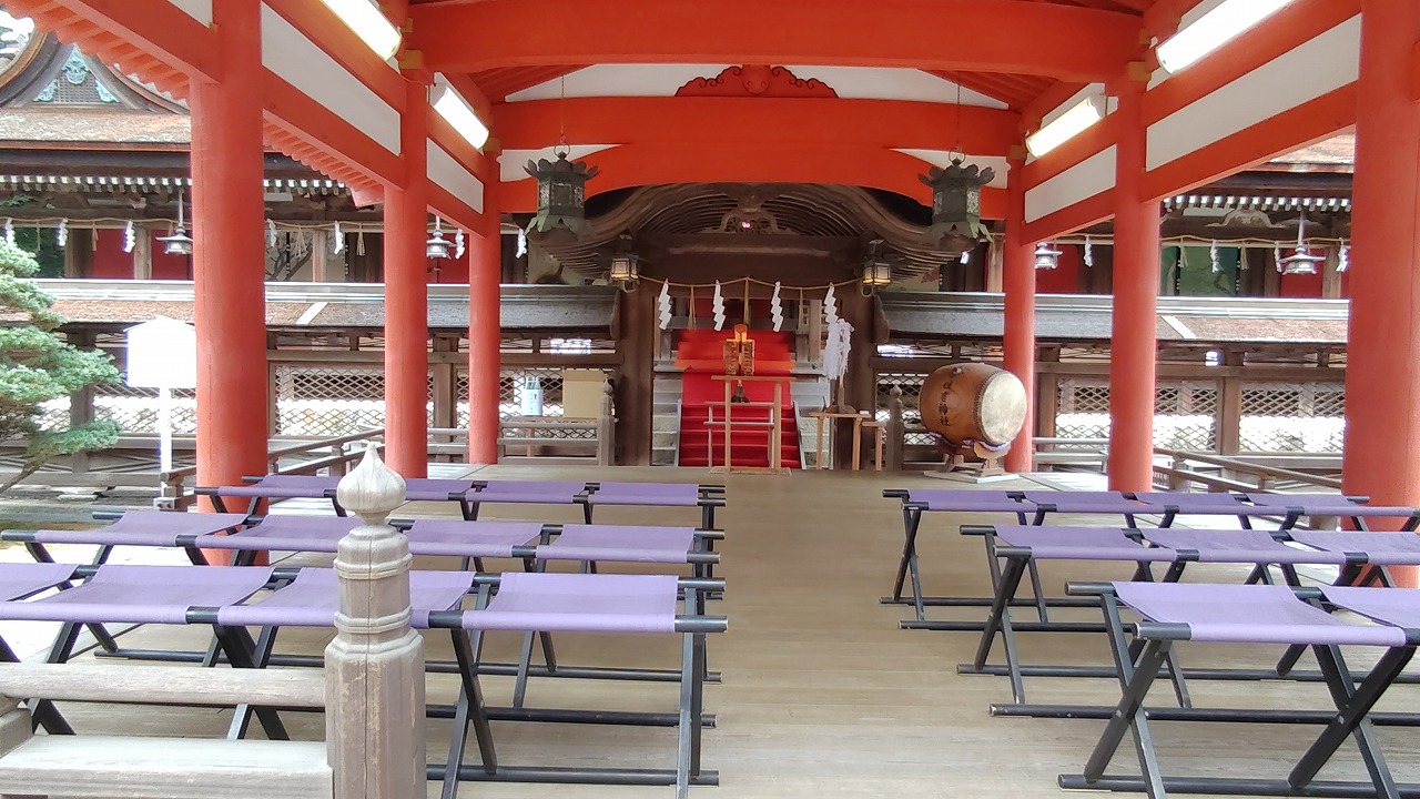 拝殿の中の様子。過去に修復などが施されているものの、創建当初の原形や特質は損なわれていないそうです。