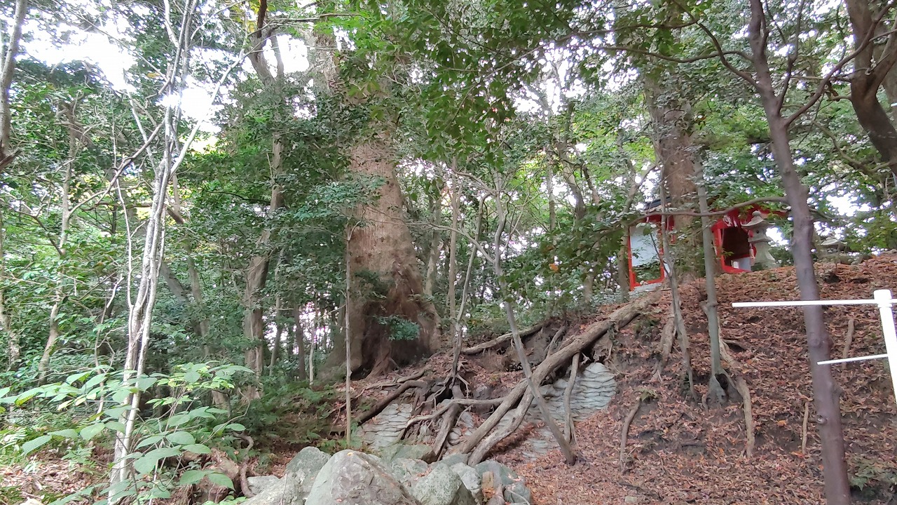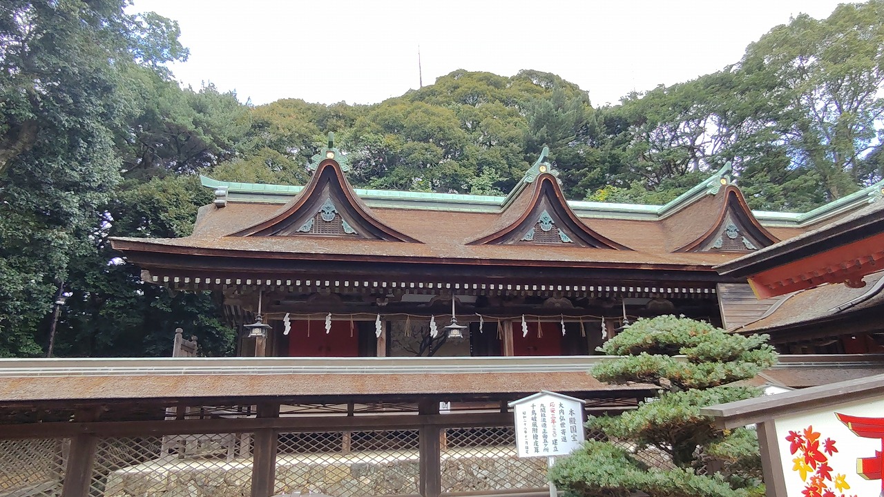 境内にある大楠は、樹齢1800年以上あるパワースポット。武内宿彌のお手植えで古株から新根が生え、根回りは60mにも及びます。