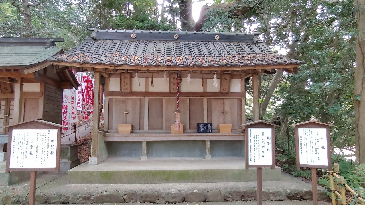 本殿の裏にまわると、右から七社・蛭子社・田尻社・若宮社が鎮座します。