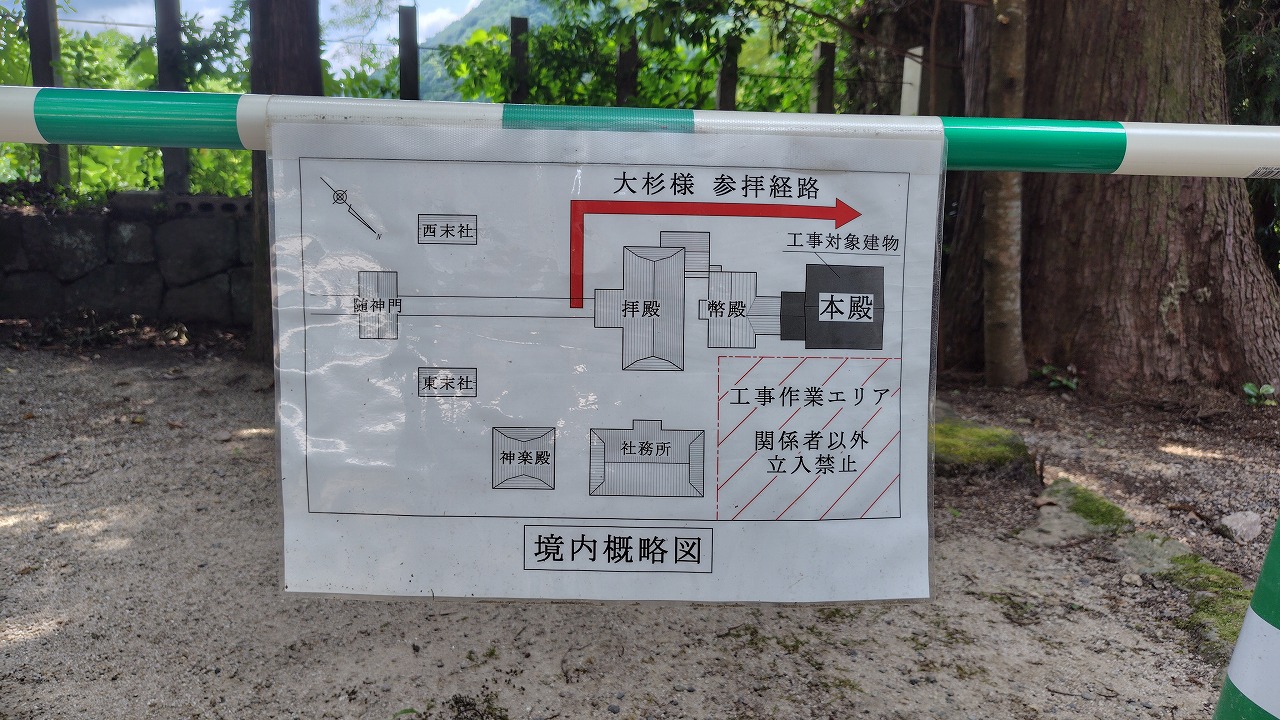 何の案内かなと思いきや、本殿は改修工事中でした。残念(-_-;)