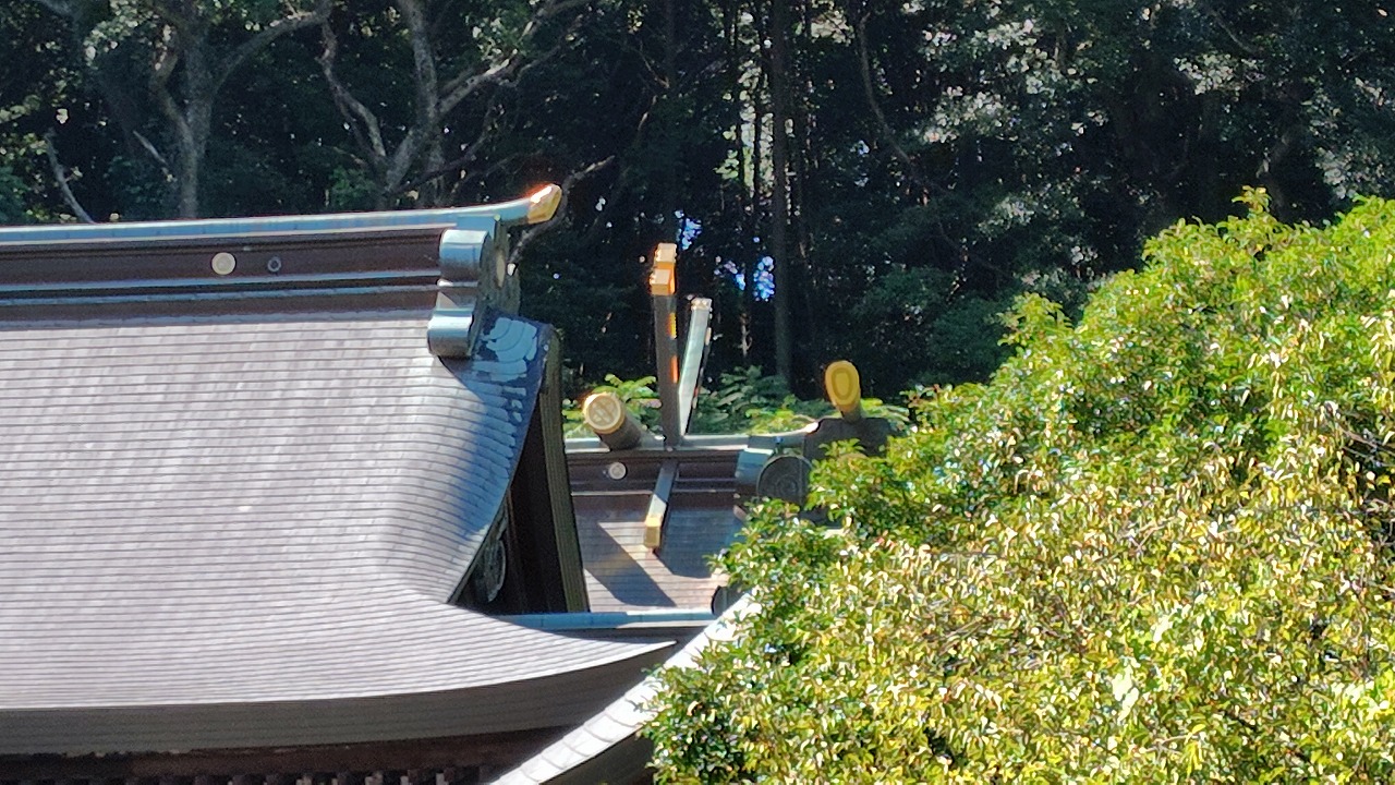 拝殿の裏側に回ることができません。わずかに見える本殿。見えるかな。