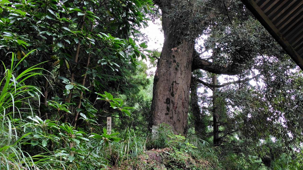 本殿裏側にそびえる「イチイガシ」。宇佐神宮から400年以上前にもらったそうです。