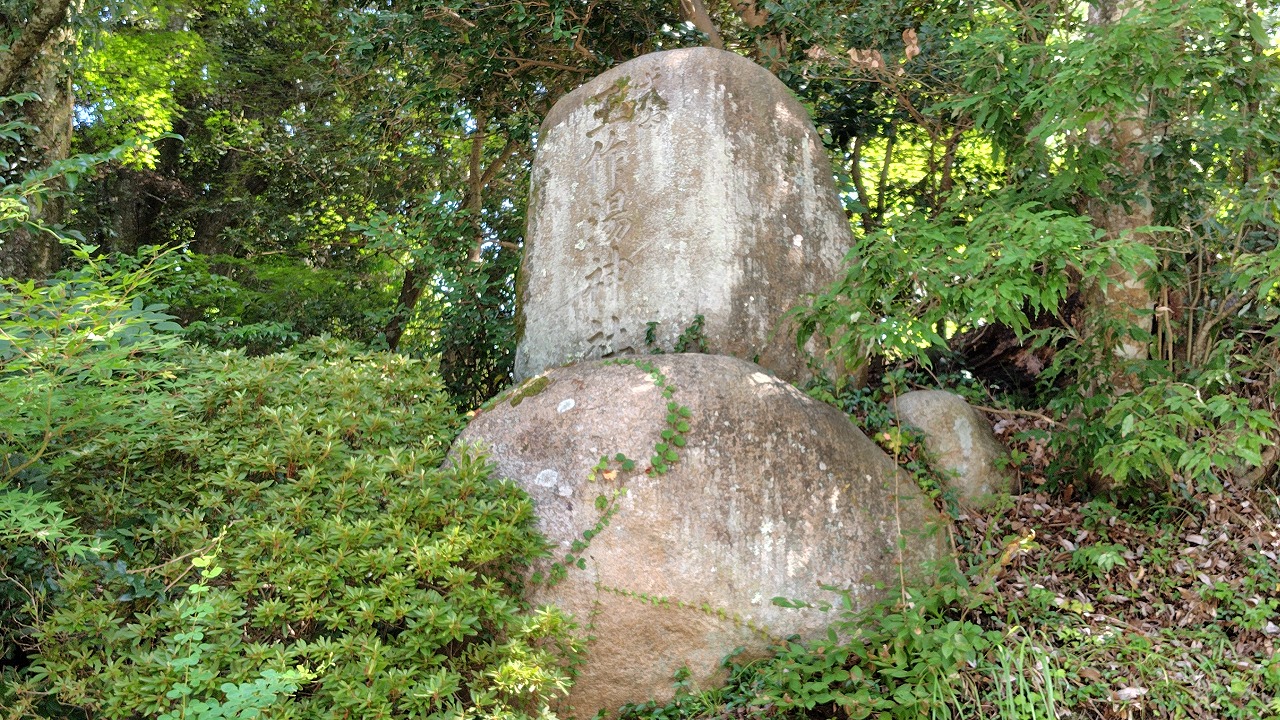 大きい岩に「玉作湯神社」と彫られています。社号標かな?