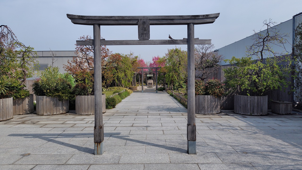 2011年3月、九州新幹線の全線開業に合わせてJR博多シティがオープン。その屋上庭園「つばめの杜ひろば」に旅の安全を祈願する場所として鉄道神社が創建されました。御祭神は博多区内の住吉神社から分霊された住吉大神です。