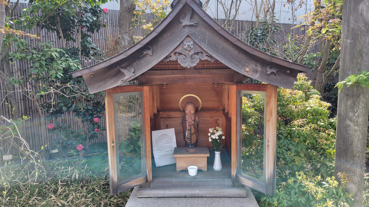 近くには「和顔施合掌地蔵」があります。東日本大震災で被災した人々の無事と復興を願い、慈悲の象徴としてこの地に安置されました。