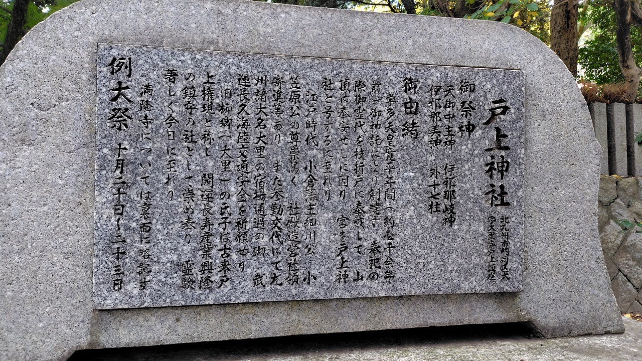 近くにあった由緒書き。昔は戸上権現と呼ばれていたようです。