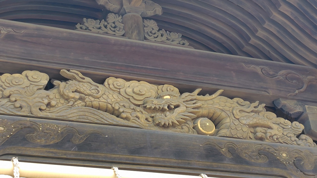 拝殿に金色の目をした龍があしらわれています。すごーい!