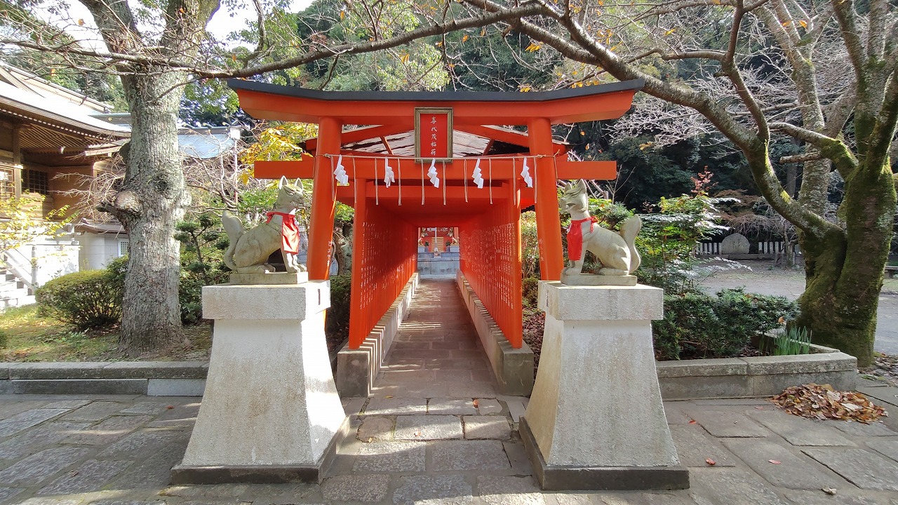 社殿向かって右手前に鎮座する喜代茂稲荷神社。宇迦之御魂神をお祀りしています。