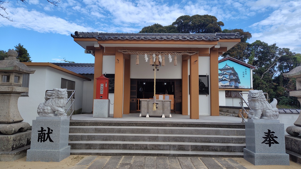 奥に見えるのが本殿。ん?お城の絵馬があります。なぜ??