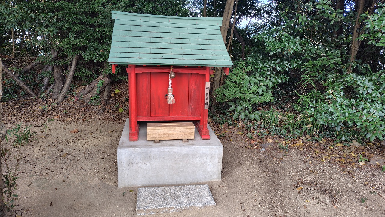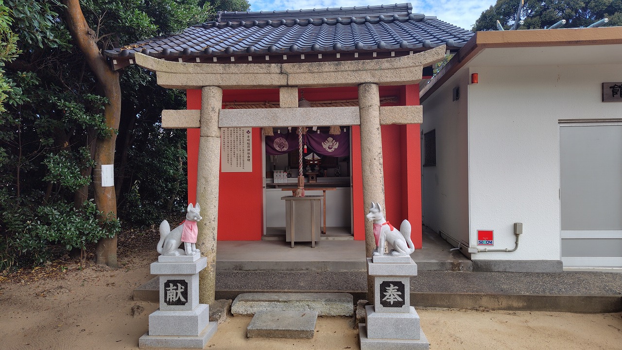 本殿左側に鎮座する串崎稲荷神社。商売繁盛、衣食住の神様として信仰されています。