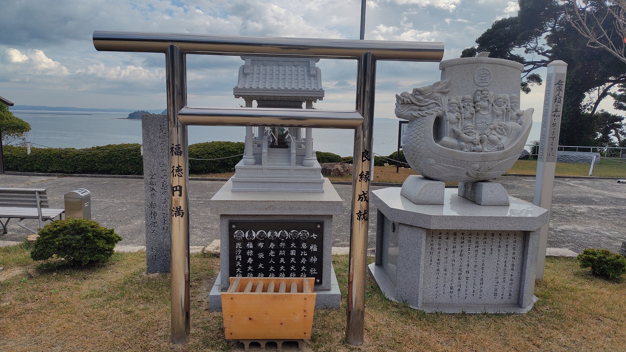 七福神社。龍宮界との窓口の海域として知られていることから、七福神の宝船ではなく「龍神船」になっています。
