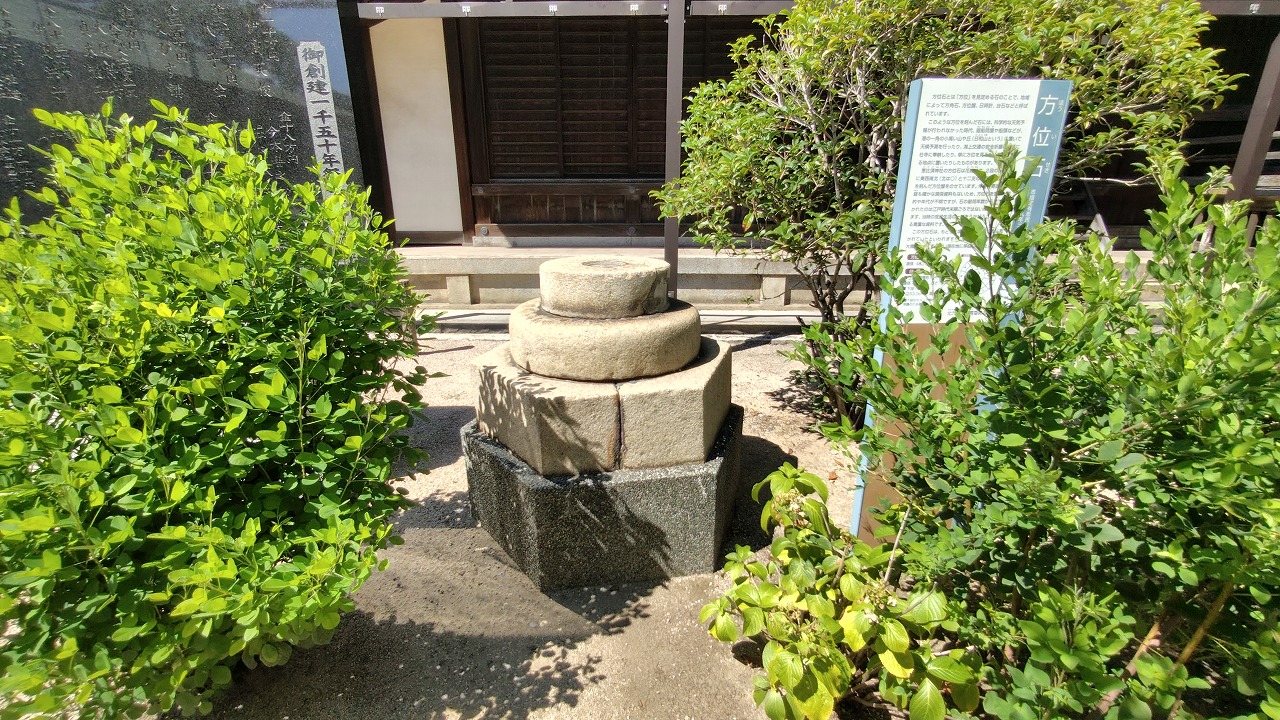 方位を見定める「方位石」。地域によっては、方角石、方位盤、日時計、台石と呼ばれます。