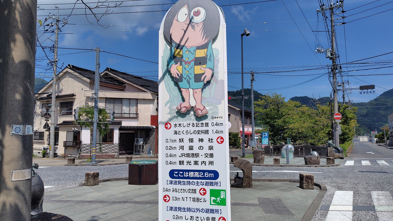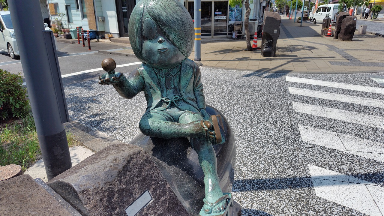 鳥取県境港市の水木しげるロードに鎮座します。代表作「ゲゲゲの鬼太郎」の世界が体感できます。