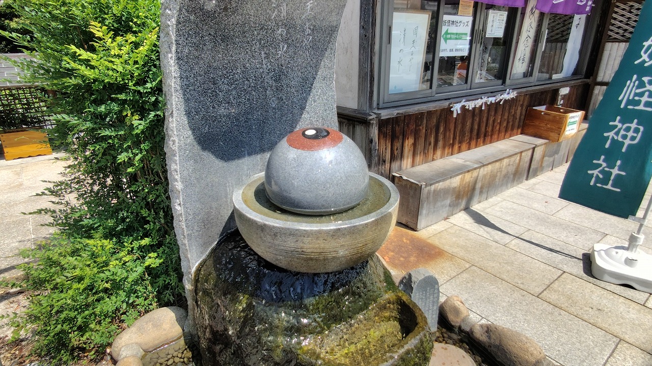 目玉おやじ清めの水。手水舎の役目を果たします。